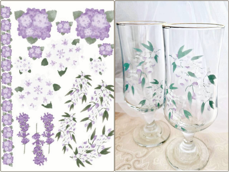 【ガラス用】藤と紫陽花パープル転写紙