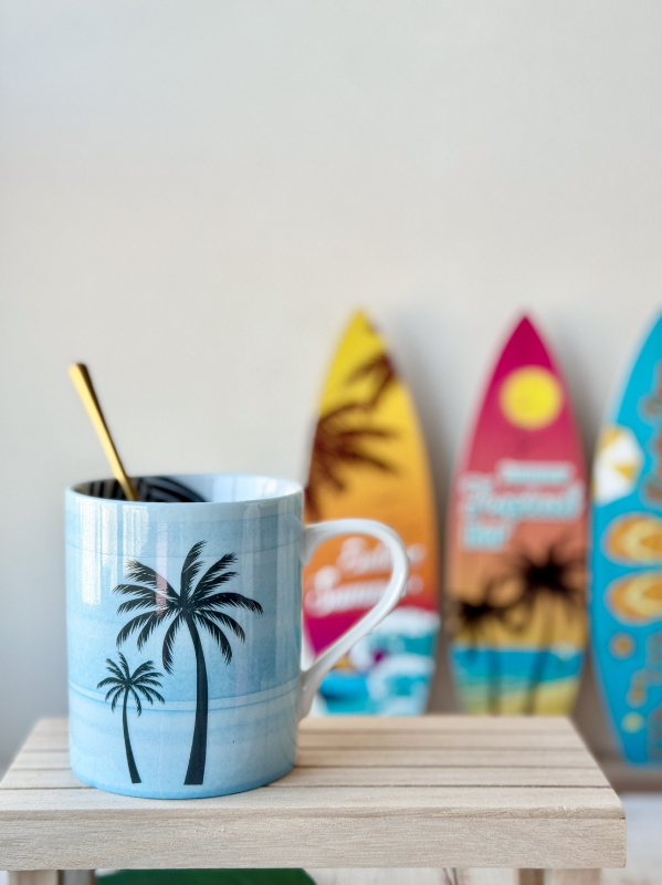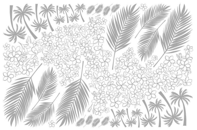 【白磁用】プルメリア&ヤシ 線画 転写紙 グレー A3 サイズ (ポーセラーツ ポーセリンアート 花柄 Summer Hawaii)
