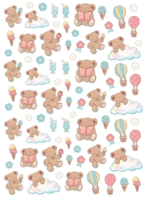 28日まで発売記念特別SALE♪【白磁用】クマのお散歩Time転写紙(ポーセラーツ 転写紙 ポーセリアート くま アイス ジュース 気球)