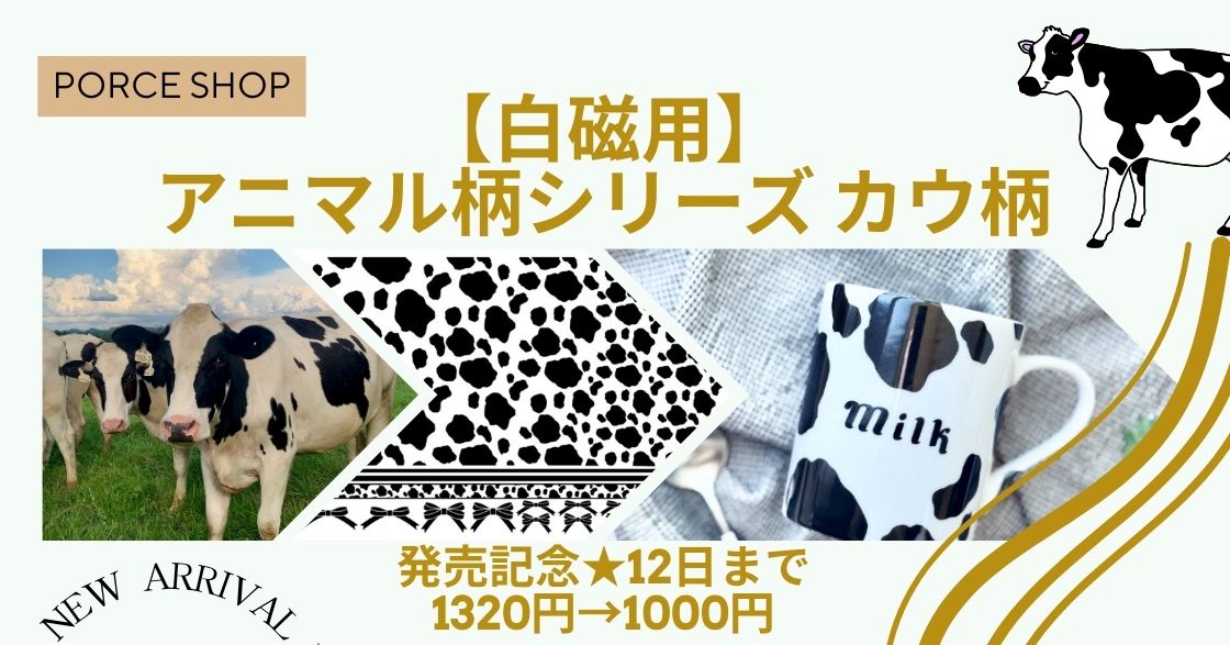 【12日まで★1000円】大人かわいいアニマル柄 白磁用 カウ柄 転写紙 発売記念SALE開催♪