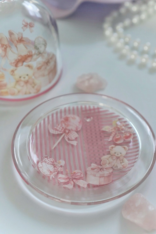 【ガラス用】ラブリーガーリーリボン転写紙 (ポーセラーツ 転写紙 ポーセリアート リボン クマ ウサギ ケーキ マカロン 香水瓶 貝殻)