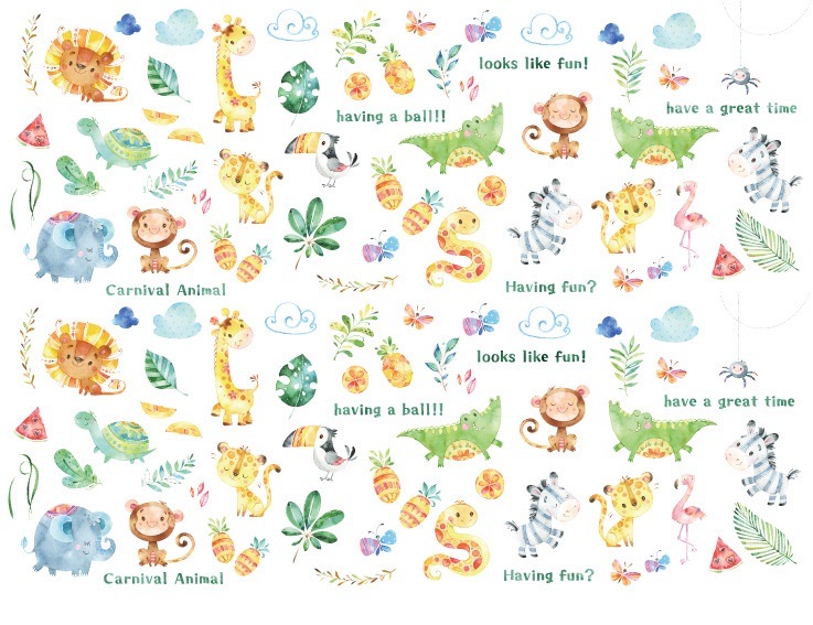 【白磁用】Carnival Animal カーニバルアニマル転写紙 A4 (ポーセラーツ 転写紙 ポーセリンアート キッズ 動物)