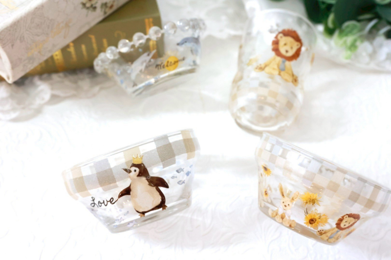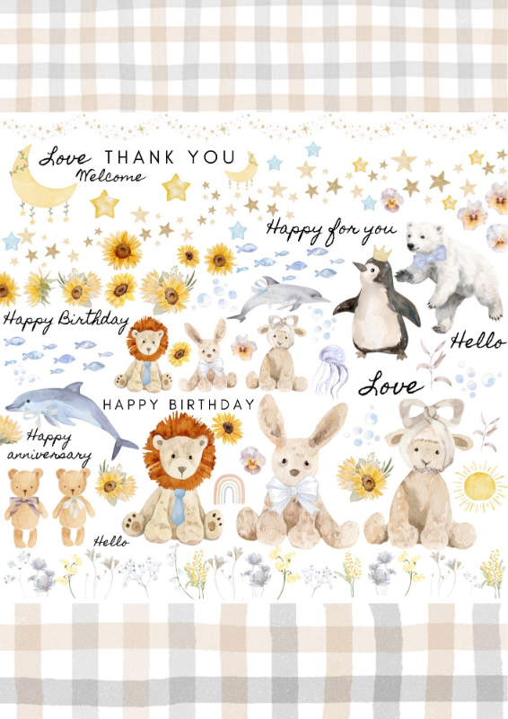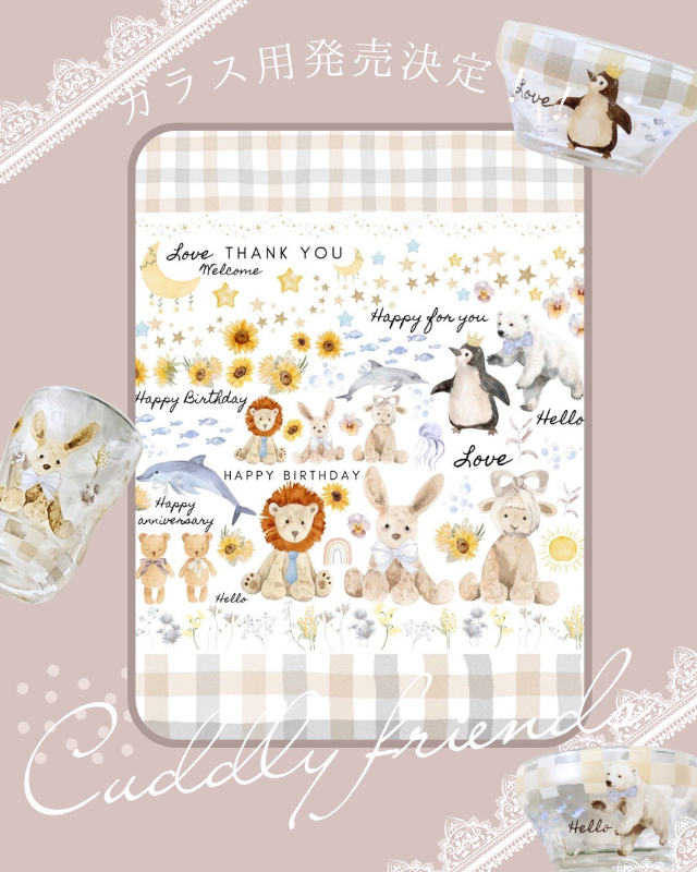 【ガラス用】cuddly friends カドリ―・フレンズ 転写紙 (ポーセラーツ ポーセリンアート 転写紙  ウサギ クマ ライオン ペンギン シロクマ ギンガムチェック)
