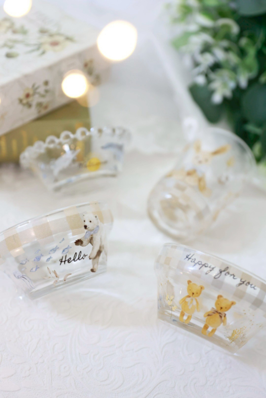 【ガラス用】cuddly friends カドリ―・フレンズ 転写紙 (ポーセラーツ ポーセリンアート 転写紙 ウサギ クマ ライオン ペンギン シロクマ ギンガムチェック)