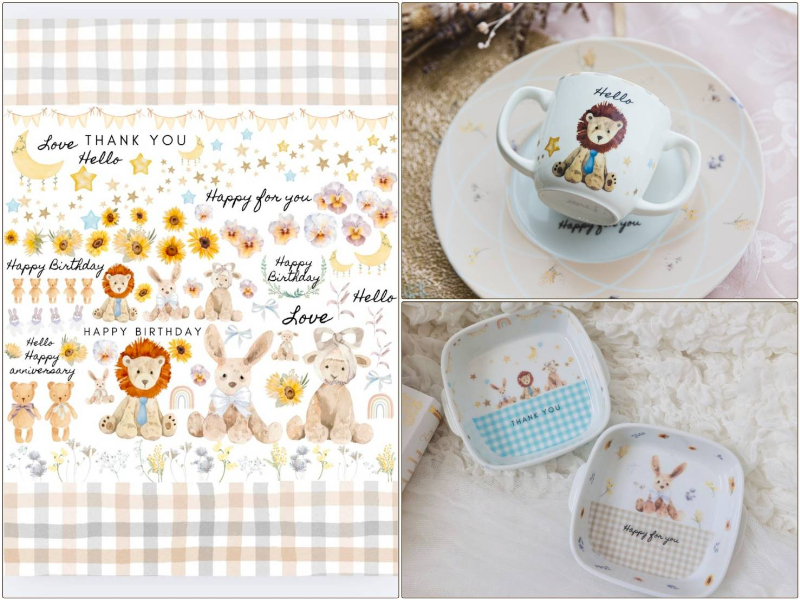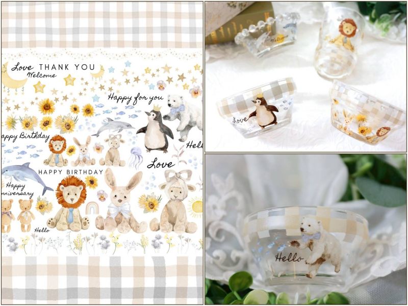 【セット割】cuddly friends カドリ―・フレンズ 転写紙 ※白磁&ガラス用お得なセット(ポーセラーツ ポーセリンアート 転写紙 ウサギ クマ ライオン ギンガムチェック)