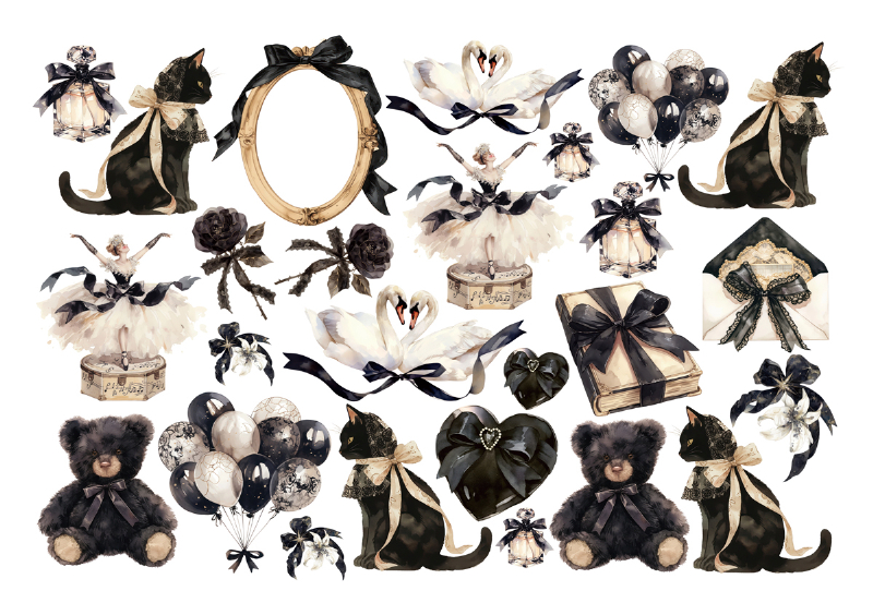 黒猫、白鳥(スワン)、バレリーナ、テディベア、