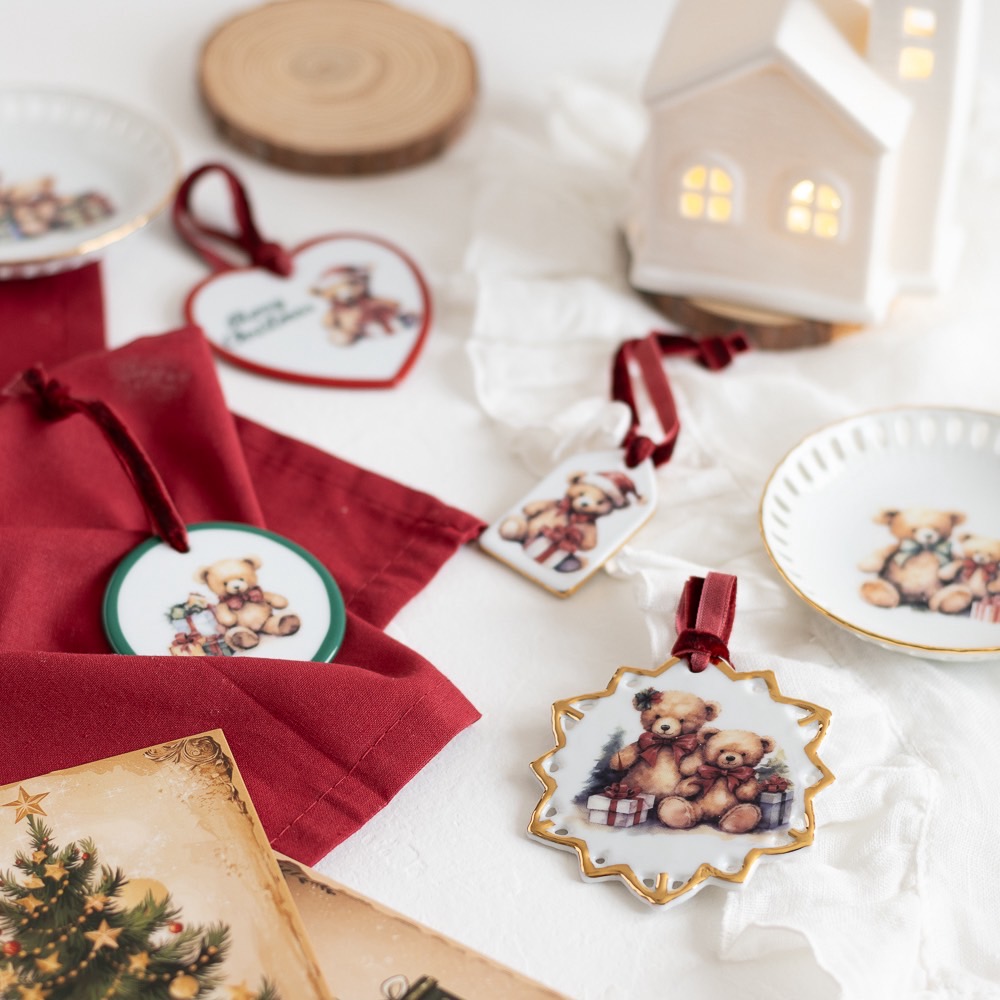 【白磁用】Little Bear Holiday クリスマス転写紙(ポーセラーツ 転写紙 ポーセリアート リボン クリスマス Christmas クマ)