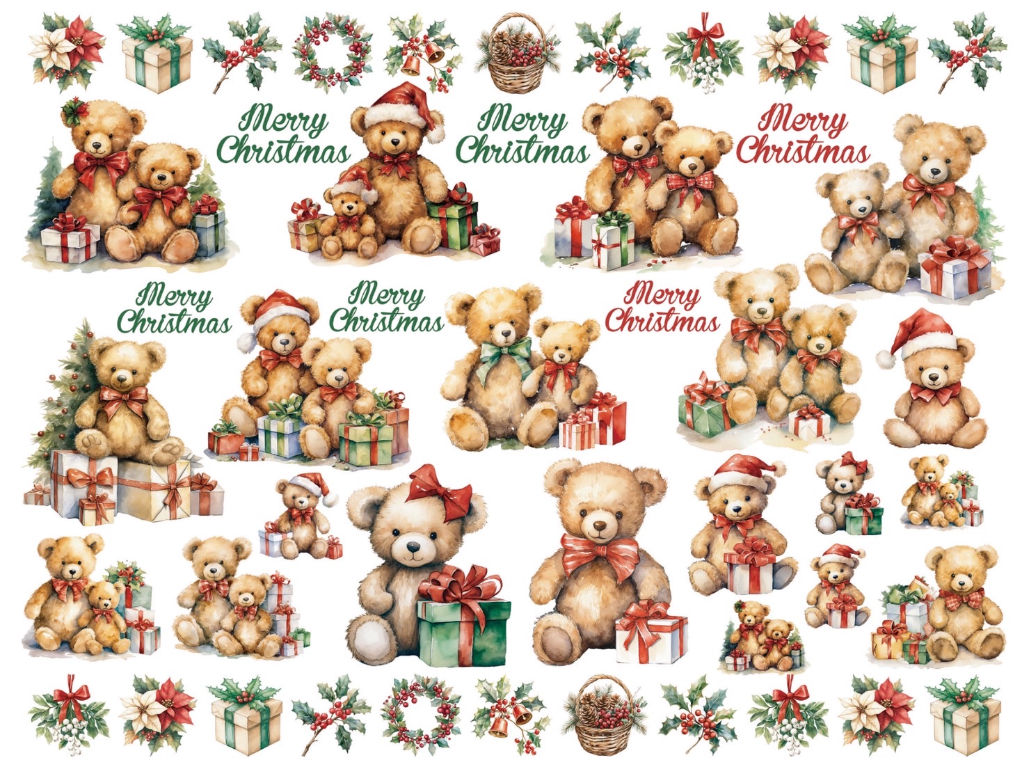 テディベア、プレゼント、リース、ポインセチアなど、