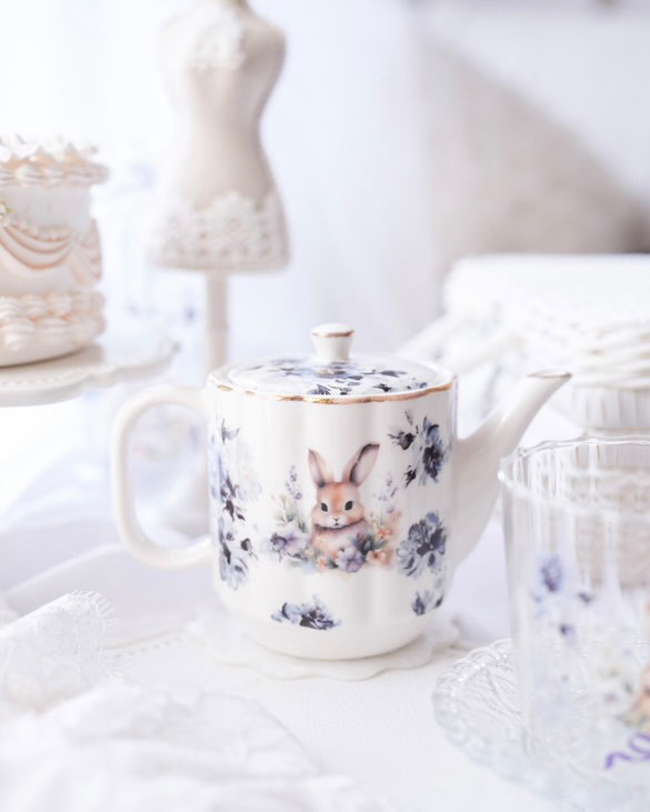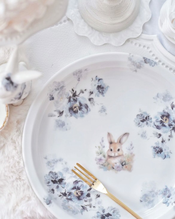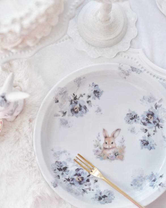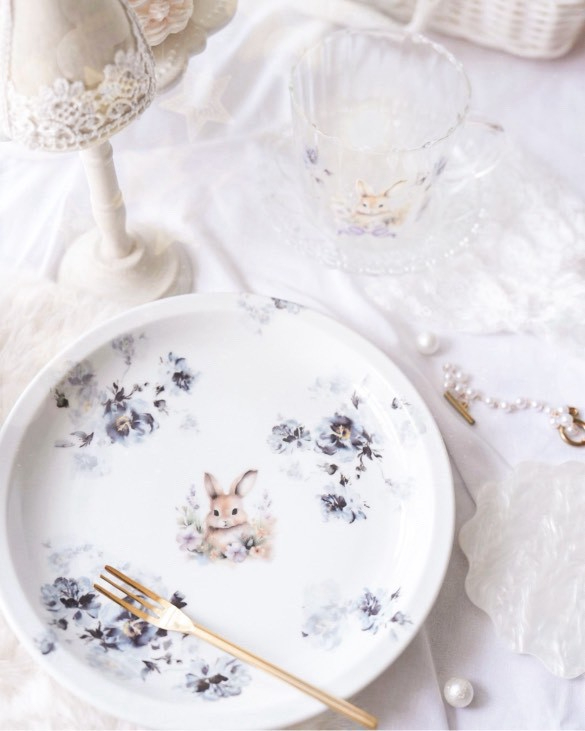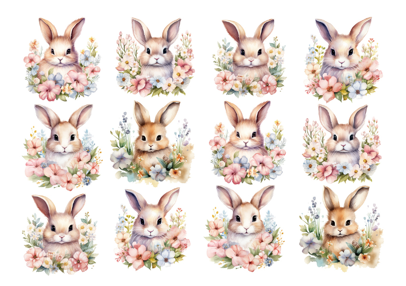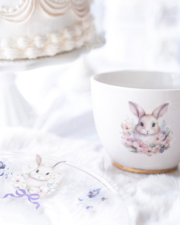 【白磁用】ブロッサムバニー転写紙 (ポーセラーツ 転写紙 ポーセリアート 花 フラワー ウサギ 水彩 うさぎ ラビット)