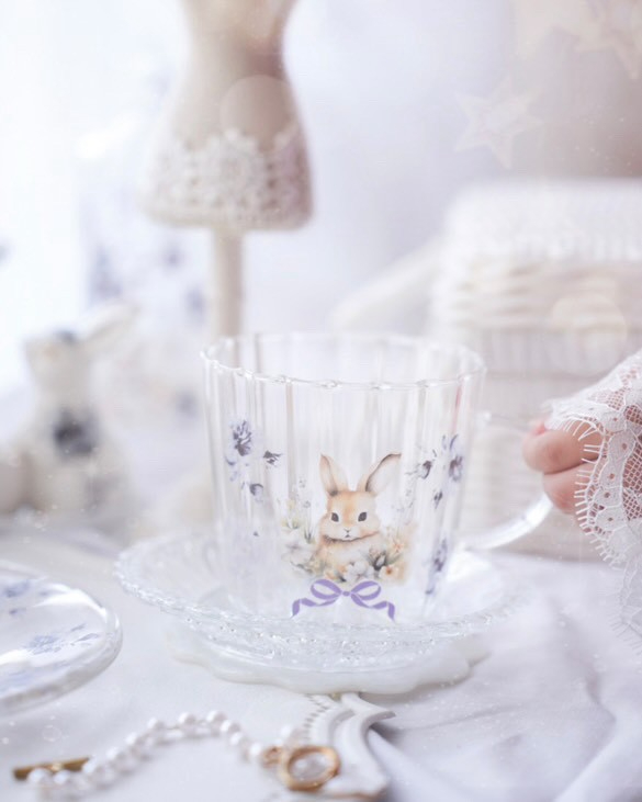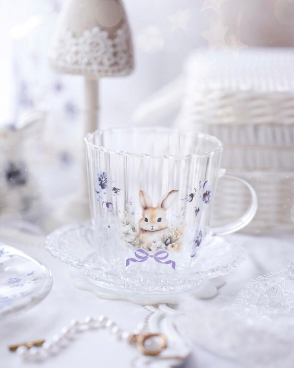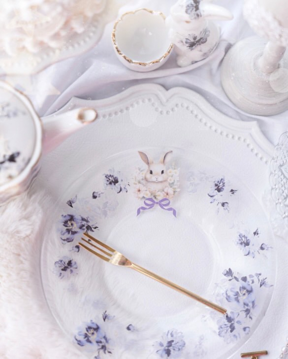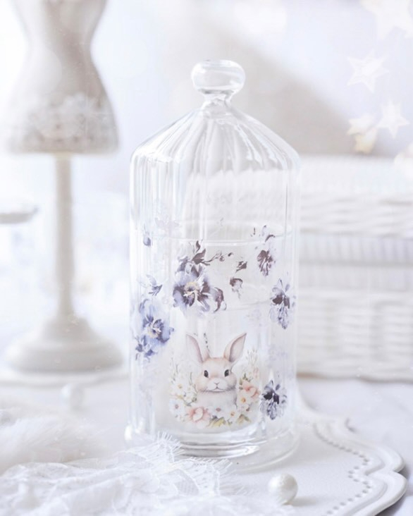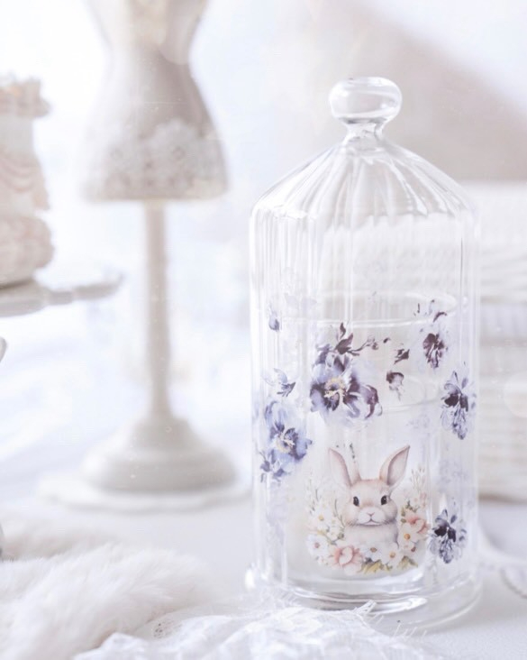 【ガラス用】ブロッサムバニー転写紙 (ポーセラーツ 転写紙 ポーセリアート 花 フラワー ウサギ 水彩 うさぎ ラビット)
