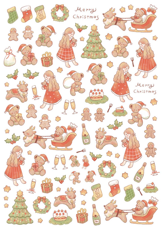 【白磁用】Holy bear クリスマス転写紙(ポーセラーツ 転写紙 ポーセリアート クリスマス Christmas クマ もみの木)