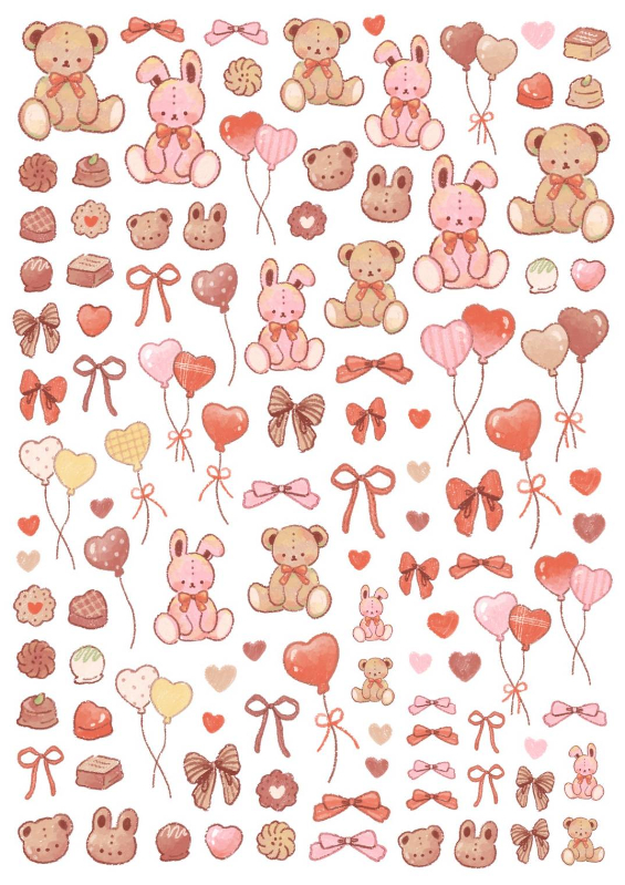 【白磁用】Sweet Friends スイーツフレンズ転写紙(ポーセラーツ 転写紙 ポーセリアート  バレンタイン クマ うさぎ チョコレート お菓子 ハート)