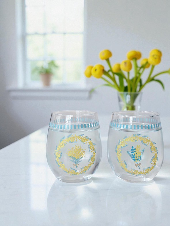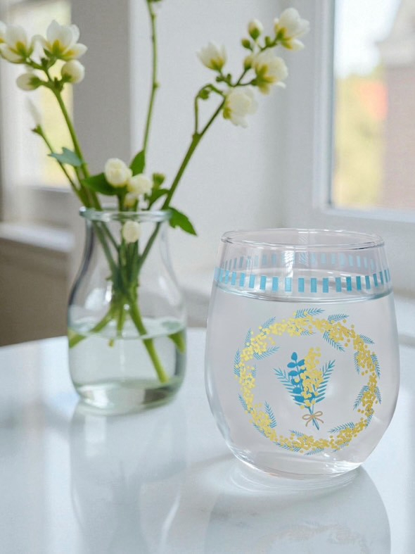 【ガラス用】北欧風フルールミモザ転写紙(ポーセラーツ 転写紙 ポーセリアート 花 フラワー 鳥 mimosa)