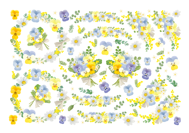 【白磁用】北欧風フローラルパンジーリース転写紙(ポーセラーツ 転写紙 ポーセリアート 花 フラワー)