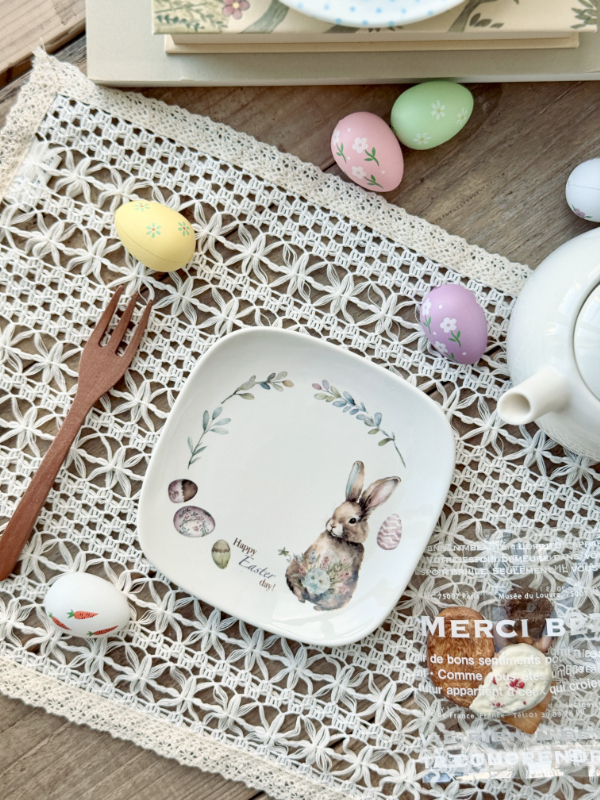 【白磁用】フローラルバニーwithハッピーイースター転写紙 (ポーセラーツ 転写紙 ポーセリアート 花 フラワー ウサギ うさぎ 水彩 フラワー ラビット Easter)