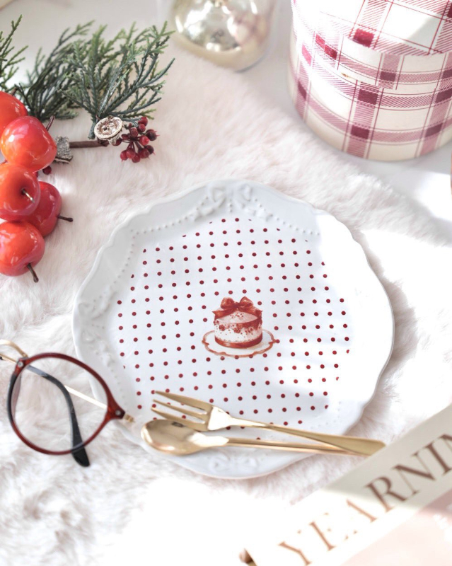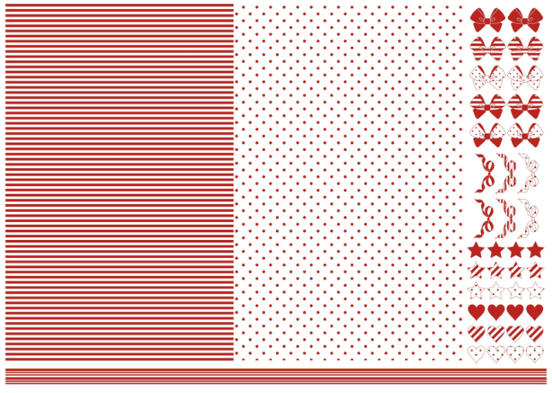 【白磁用】レッド ドット×ストライプ&CUTEな飾りつき転写紙 A3サイズ ( ポーセラーツ 転写紙 ポーセリンアート 赤)