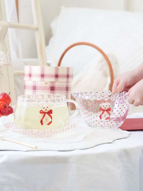 【ガラス用】レッド ドット×ストライプ&CUTEな飾りつき転写紙 A3サイズ ( ポーセラーツ 転写紙 ポーセリンアート 赤)