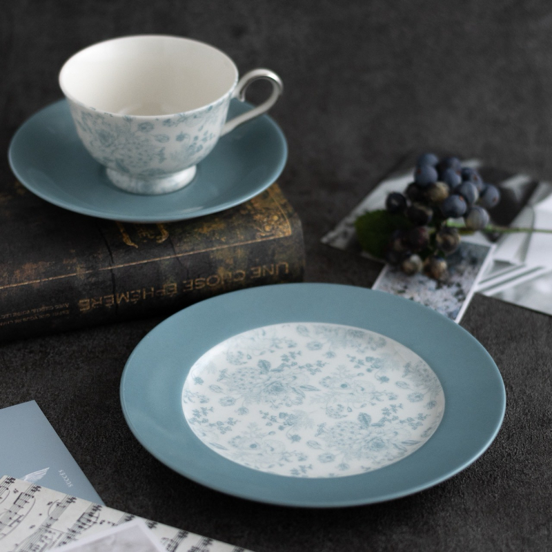 やわらかく少しグレイッシュなブルーが、白磁に上品な彩りを添えます。