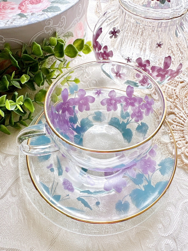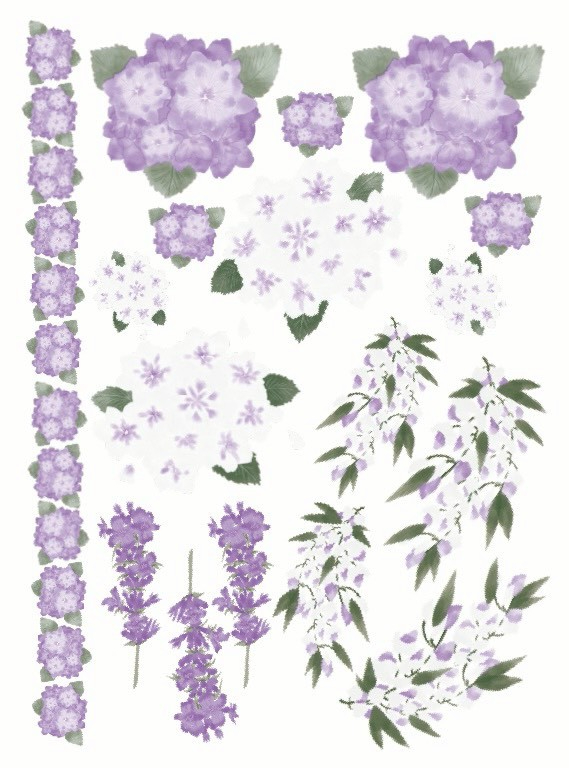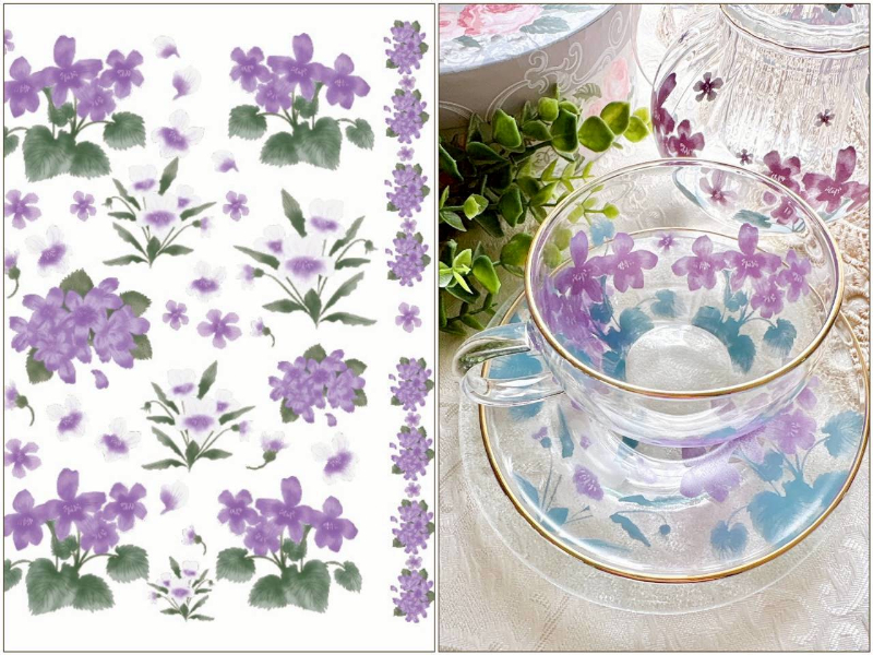 【ガラス用・セット割】藤と紫陽花パープル転写紙&スミレ転写紙 お得なセット♪(ポーセラーツ ポーセリンアート 花柄 転写紙 紫)